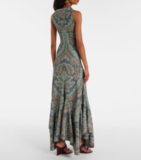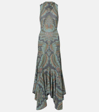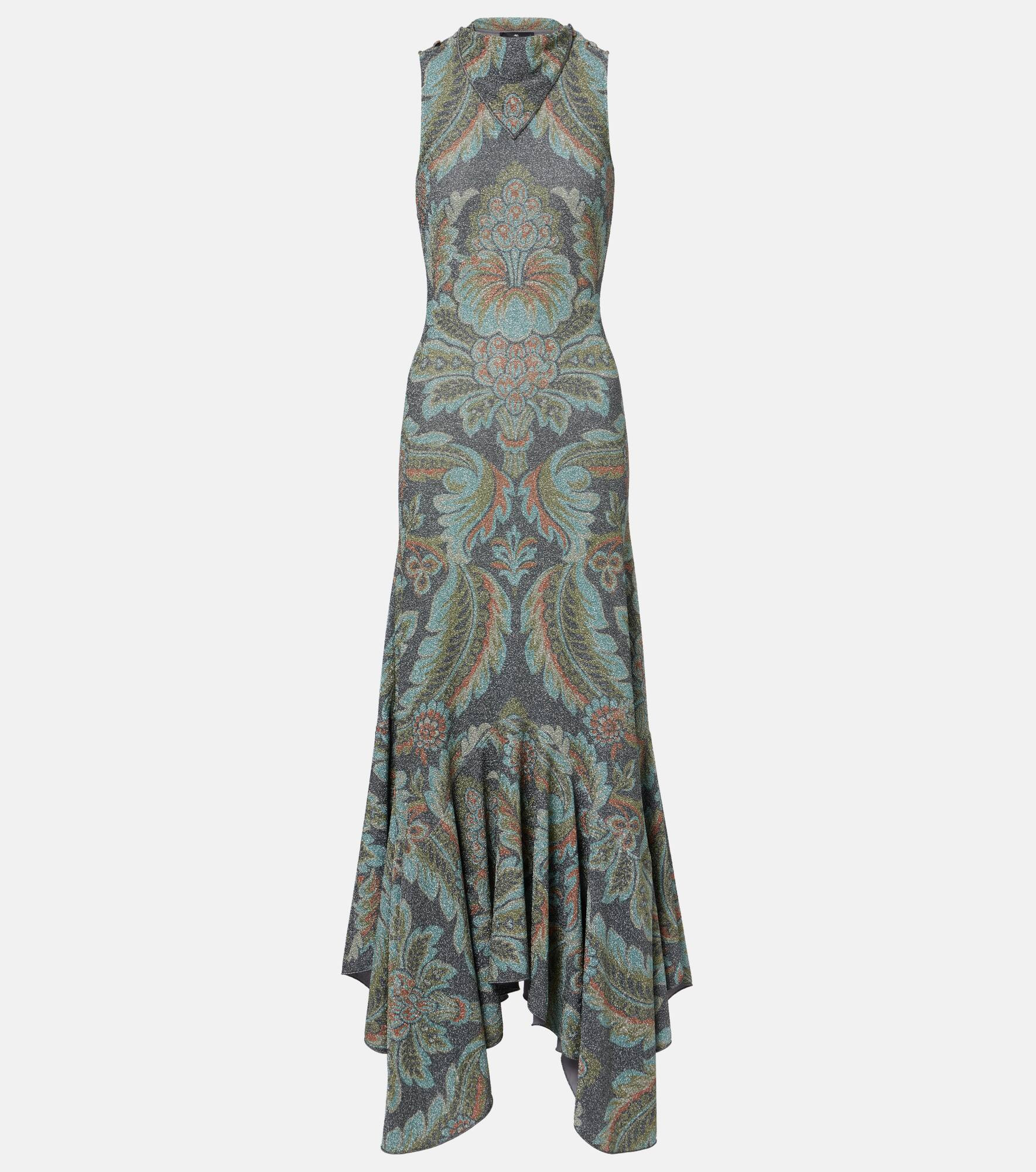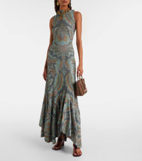 Paisley prints are so synonymous with Etro that they've become a house signature. One is featured on this gown, made in Italy with a fitted silhouette, fold-over neckline, and ruffled hemline. Product Details - Material: 65% polyamide, 30% polyester, 5% elastane - Care instructions: dry clean - Made in Italy - Designer color name: Print On Black Base - Item color: multicolor - Closure: button fastening - Item number: P01072954 Size & Fit - True to size - Fitted - Stretchy fabric - The model seen in the picture is 178cm-5'10" and wearing a size IT 40