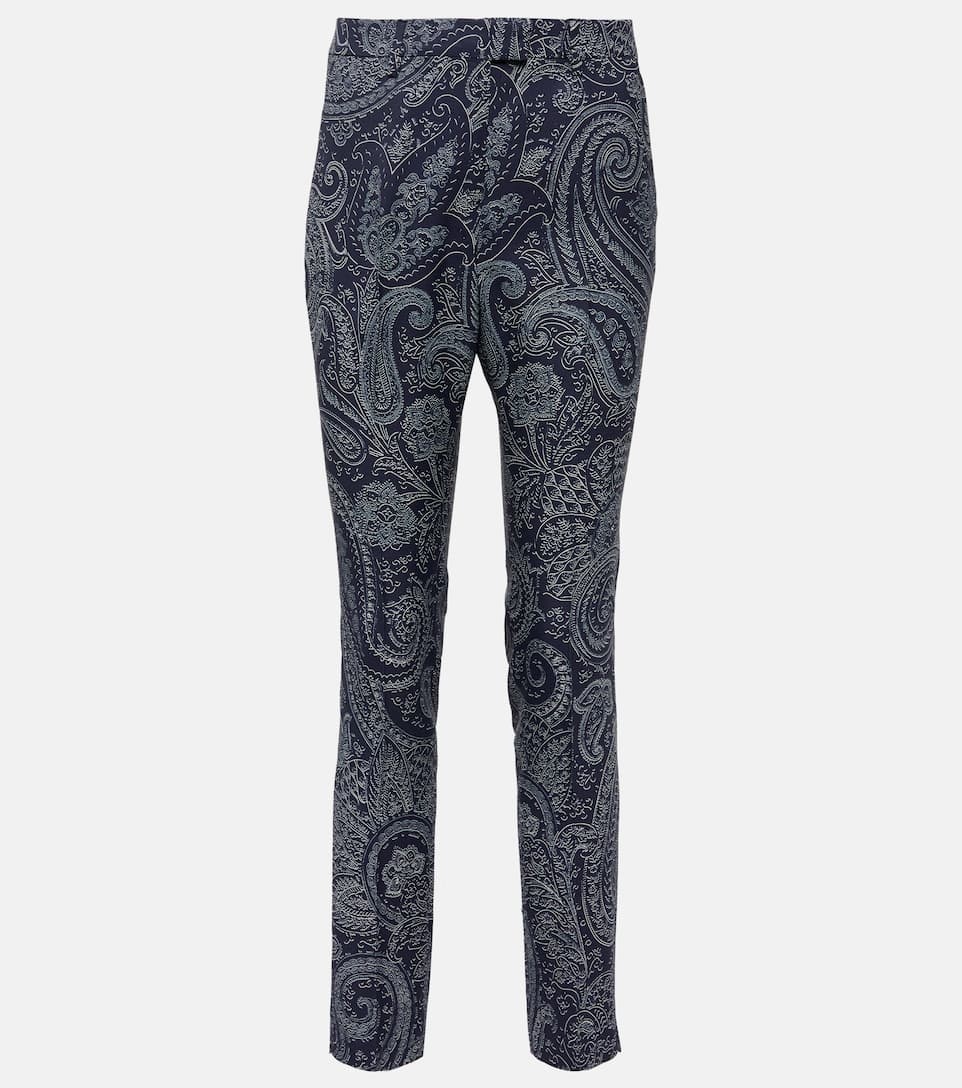 Paisley prints are so synonymous with Etro that they've become a house signature. These pants are made from a stretchy wool blend, feature a high-rise silhouette, and have a slim fit. Product Details - Made in Italy - Material: 90% viscose, 10% wool - Closure: zipper, hook fastening - Designer color name: 1 - Care instructions: dry clean - Item number: P00759611 Size & Fit - True to size - Mid-weight material - Slim-leg - The model seen in the picture is 178cm-5'10" and wearing a size IT 40