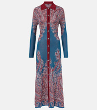Paisley prints are so synonymous with Etro that they've become a house signature. One is featured on this shirtdress, made from jersey and complete with contrasting trims. Product Details - Material: 86% viscose, 14% polyester - Care instructions: dry clean - Made in Italy - Designer color name: Stampa F.Do Blu - Item color: blue, burgundy - Closure: buttoned front - Collar: classic (Straight point) - Item number: P01050772 Size & Fit - True to size - Dropped shoulders - Cinched waist - Slightly stretchy fabric - The model seen in the picture is 178cm-5'10" and wearing a size IT 40