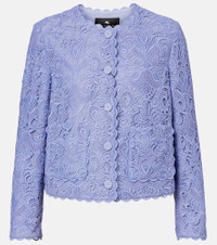 Make a statement with this jacket from Etro. The design is made from Paisley-inspired lace for a tactile effect, featuring scalloped edges and a classic, buttoned silhouette. Product Details - Material: 100% polyester - Care instructions: hand wash - Made in Italy - Designer color name: Glicine 2 - Item color: blue - Lining: 100% polyester - Item number: P01050788 Size & Fit - True to size - Straight fit - Non-stretchy fabric - Falls to the hip - The model seen in the picture is 178cm-5'10" and wearing a size IT 40