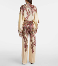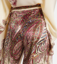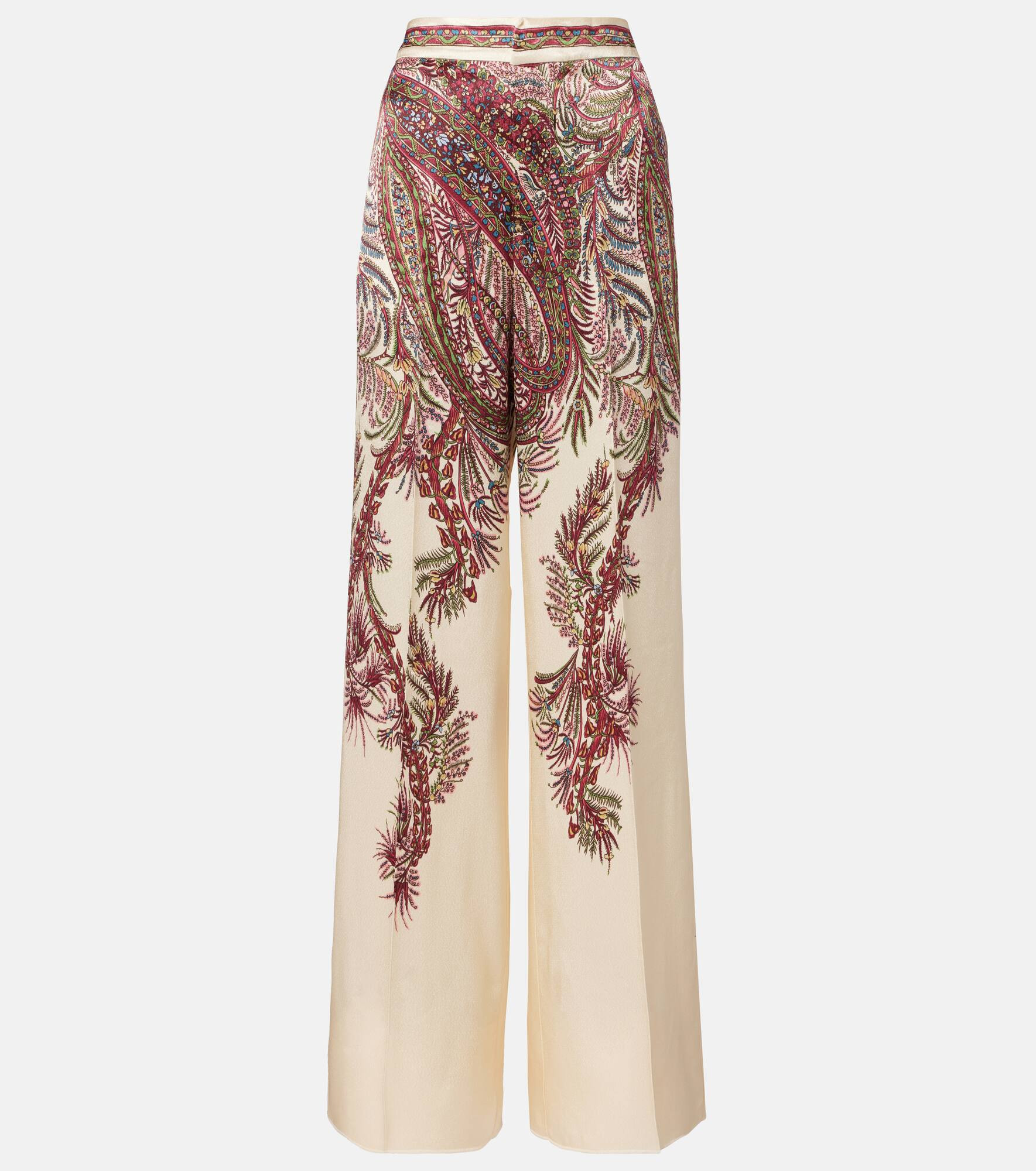 These Etro palazzo pants reflect the brand's dedication to paisley prints and elegant silhouettes that create delicate ensembles for any formal occasion. This pair is crafted from lustrous satin and finished with a sophisticated creased design. Product Details - Material: 100% viscose - Care instructions: dry clean - Made in Italy - Designer color name: Stampa F.Do Bianco - Item color: multicolor, white - Lining: 100% viscose - Item number: P01050755 Size & Fit - True to size - Non-stretchy fabric - Wide-leg - Unhemmed for tailoring - The model seen in the picture is 178cm-5'10" and wearing a size IT 40