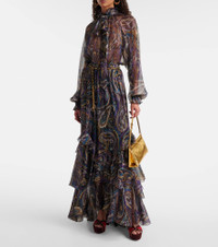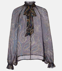 Paisley prints are so synonymous with Etro that they've become a house signature. The motif adorns this blouse, crafted from a lightweight silk blend and finished with ruffled cuffs and a tie-neck. Product Details - Material: 97% silk, 3% metallic fibres - Care instructions: dry clean - Made in Italy - Designer color name: Print On Black Base - Item color: black, multicolor - Self-tie neck - Cuff: elasticated, ruffled - Closure: button fastening - Item number: P01092301 Size & Fit - True to size - Sheer - Designed for a loose fit - Non-stretchy fabric - Falls below the hip - The model seen in the picture is 178cm-5'10" and wearing a size IT 40