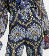 Paisley-print metallic fil coupé silk-blend wide-leg pants