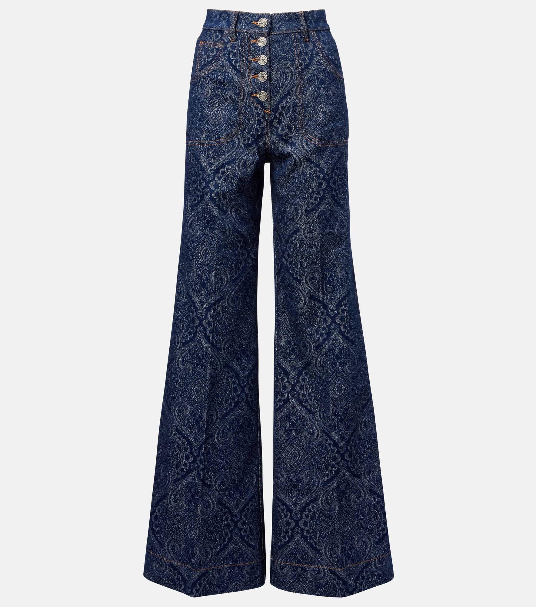 FLARED JACQUARD DENIM JEANS WITH PEGASO BUTTONS
