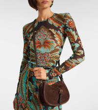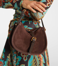 The Pony Small crossbody bag showcases Etro's artisanal heritage and refined craftsmanship. Crafted from supple suede, this style comes in a curved silhouette accented by gold-toned hardware and is finished with a front buckle strap. Product Details - Material: calf leather (suede) - Lining: cow leather - Made in Italy - Designer color name: Marrone Scuro - Item color: brown - Detachable, adjustable shoulder strap - Internal details: internal slot pocket, single compartment - Closure: magnetic fastening, buckle fastening - Hardware color: gold - Includes: dust bag - Item number: P01076450 Size & Fit - Height 16cm-6.5" - Width 22cm-8.5" - Depth 6.5cm-2.5" - Length of handle 35cm-14" - Adjustable shoulder strap - Max. length shoulder strap 118cm-46.5"