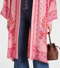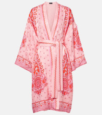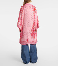Product Details - Material: 65% viscose, 35% silk - Care instructions: dry clean - Made in Italy - Designer color name: Print on Pink Base - Lining: 100% silk - Detachable belt - Item number: P01014570 Size & Fit - True to size - Dropped shoulders - Loose fit, comes with belt - Non-stretchy fabric - The model seen in the picture is 178cm-5'10" and wearing a size XS