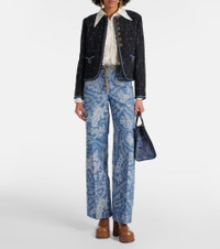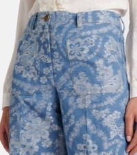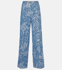 Printed Cotton Wide-Leg Pants blue
