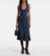 Printed denim midi dress