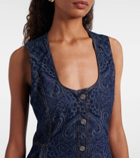 This midi dress from Etro is primed for your everyday rotation. Made from denim, the buttoned style is complete with an all-over print for a signature finish. Product Details - Material: 98% cotton, 2% elastane - Care instructions: dry clean - Made in Italy - Designer color name: Denim Blue Scuro - Item color: blue - Closure: buttoned front - Pockets: slant pockets - Side slits - Item number: P01050800 Size & Fit - True to size - Cinched waist - Non-stretchy fabric - Height of model is 177cm-69.5" and wears a size IT 40