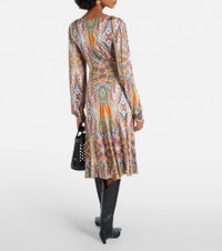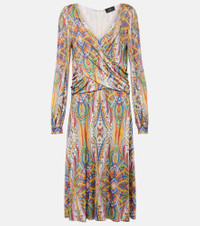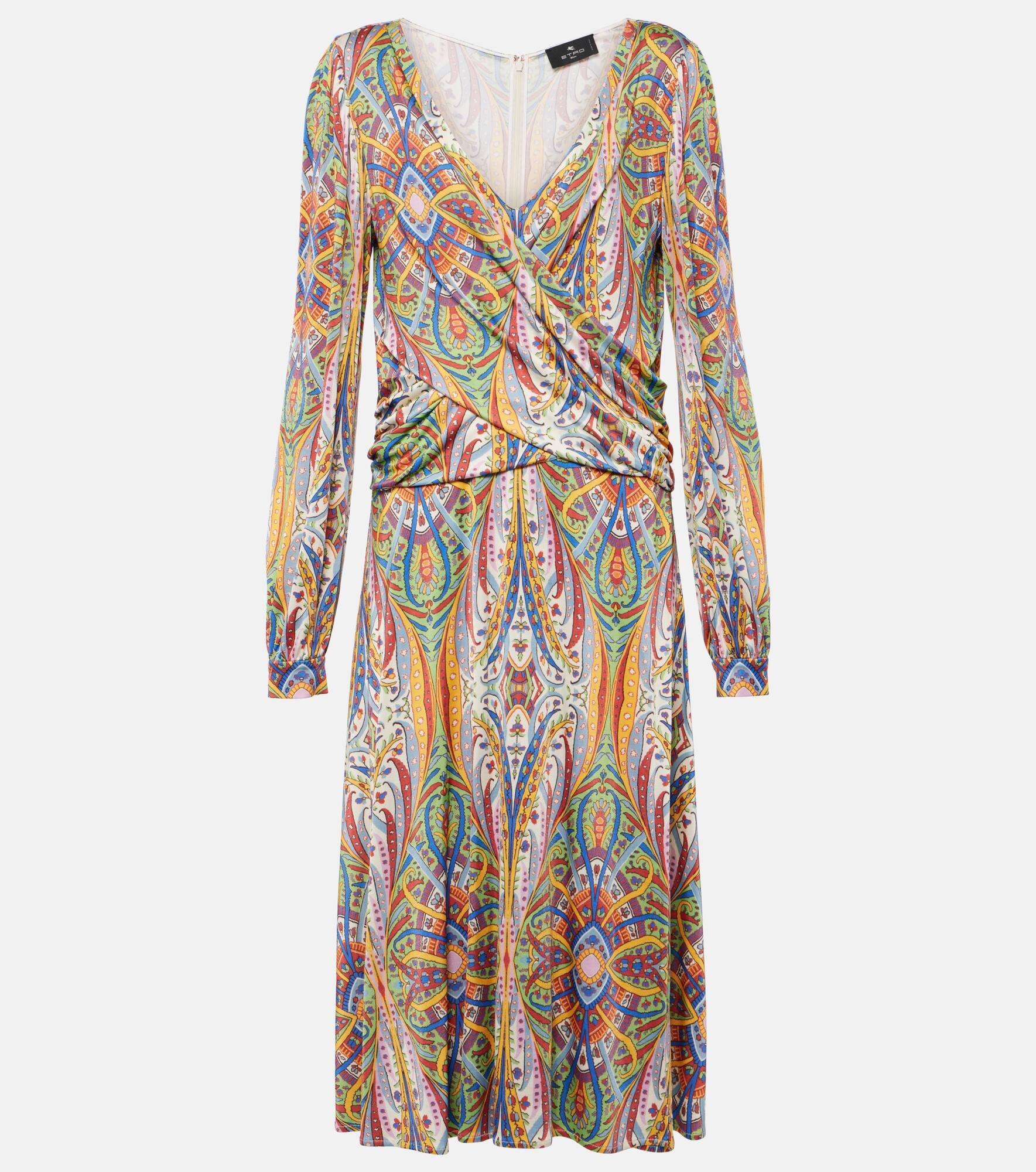 Printed gathered jersey midi dress