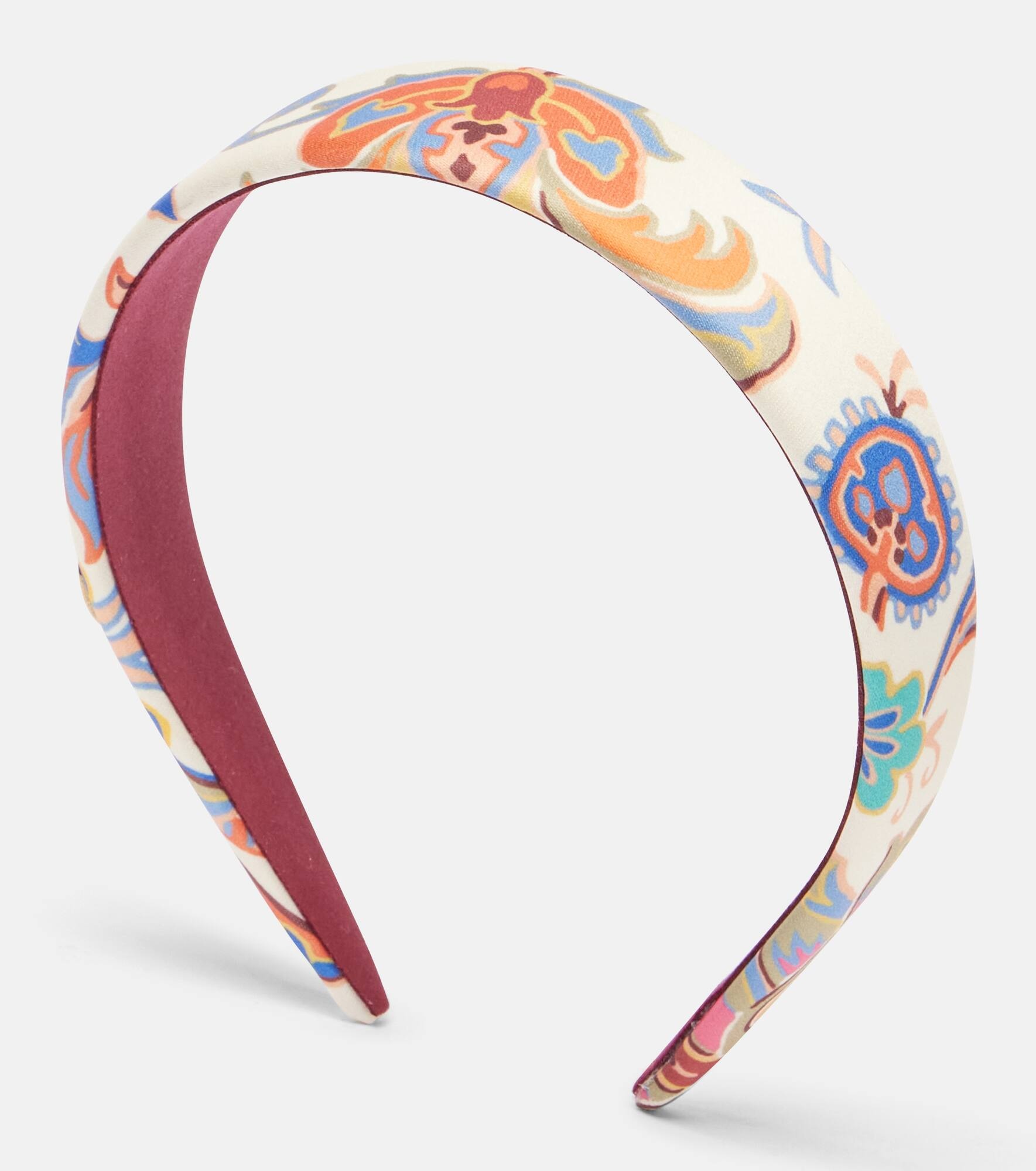 This headband from Etro brings a dose of playfulness to any ensemble. The accessory is printed all over with one of the brand's exuberant motifs and detailed with the Pegaso motif. Product Details - Material: 100% polyester - Care instructions: do not wash - Made in Italy - Designer color name: Stampa F.Do Bianco - Item color: multicolor - Material II: 100% polyester - Details: 100% zamak - Includes: dust bag - Item number: P01054890 Size & Fit - Width 3cm-1"