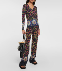 Printed high-rise silk pants