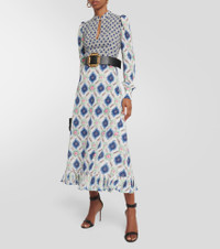 Etro's bohemian elegance appears with an artful focus for this mosaic-inspired midi dress. Shaped with a stand collar and long-sleeved bodice that boasts a spliced construction, this silk-lined style falls to a straight-fitting skirt. Product Details - Made in Italy - Material: 2% elastane, 98% polyester - Care instructions: dry clean - Designer color name: Viola - Interlining: 100% silk - Buttoned cuffs - Item number: P00839534 Size & Fit - True to size - Cinched waist - Mid-weight material - The model seen in the picture is 178cm-5'10" and wearing a size IT 40