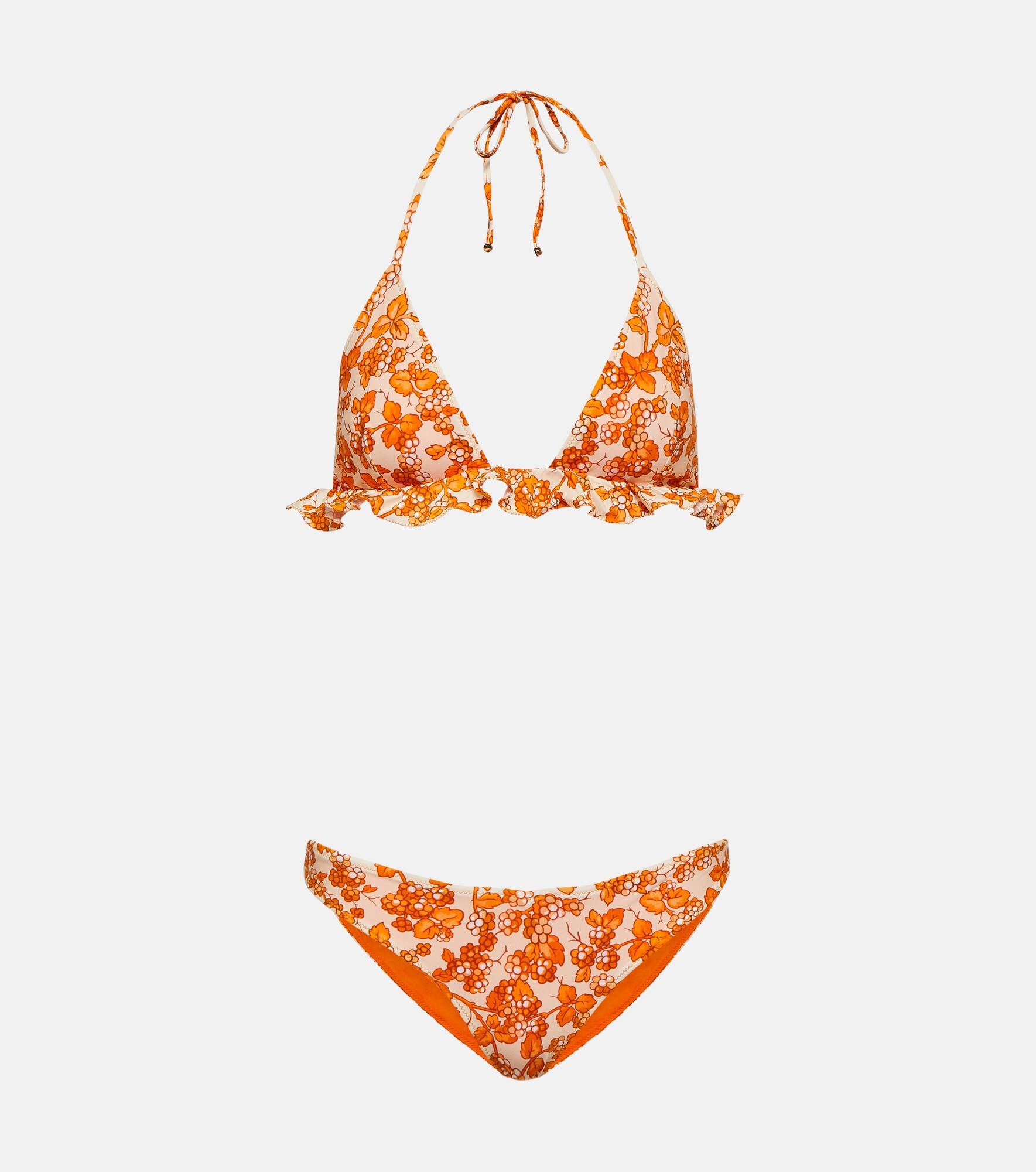 This bikini from Etro features a matching printed berries design. The self-tie halterneck top has triangular cups trimmed with ruched detailing. Product Details - Care instructions: hand wash - Lining: 25% elastane, 75% polyamide - Made in Italy - Designer color name: Arancio - Material: 28% elastane, 72% polyamide - Item number: P00837950 Size & Fit - True to size - High-cut leg - The model seen in the picture is 178cm-5'10", cup size B, and wearing a size XS - Unpadded Top