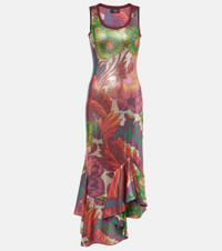 LAMINATED JERSEY DRESS WITH MAXI FLORAL PRINT