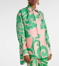 Product Details - Material: 100% silk - Care instructions: dry clean - Made in Italy - Designer color name: Print On Purple Base - Closure: buttoned front - Pockets: angled chest pocket - Item number: P01014744 Size & Fit - True to size - Dropped shoulders - Designed for a loose fit - Non-stretchy fabric - Falls below the hip - The model seen in the picture is 178cm-5'10" and wearing a size IT 40