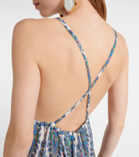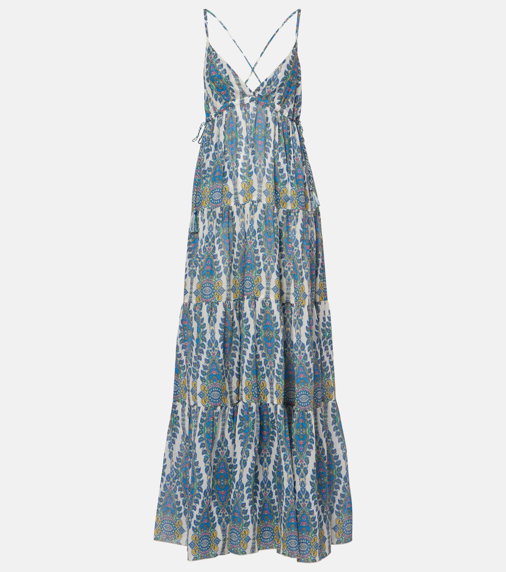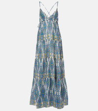 Printed tiered cotton and silk maxi dress