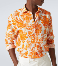 Etro's brand DNA manifests Italian glamour through revelry in color, fabric, and an approach to elegance that's entirely its own. Crafted from pure linen, this shirt promises lightweight comfort and stands out with its vibrant allover print. Product Details - Material: 100% linen - Care instructions: machine wash at 30 degrees - Made in Italy - Designer color name: Orange Exclusive - Item color: orange - Closure: buttoned front - Item number: P01049698 Size & Fit - True to size - Without pleats in the back - Classic fit - Non-stretchy fabric - Falls below the hip - The model in the picture is 185cm-6'1" and wearing a size EU 41