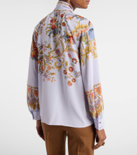 Etro's brand DNA manifests Italian glamour through revelry in color, fabric, and an approach to elegance that's entirely its own. This blouse is made from semi-sheer jacquard in Italy. Product Details - Material: 100% silk - Care instructions: dry clean - Made in Italy - Designer color name: X0882 - Item color: blue, multicolor - Self-tie collar - Cuff: buttoned - Item number: P01122159 Size & Fit - True to size - Designed for a loose fit - Non-stretchy fabric - Falls below the hip - The model seen in the picture is 178cm-5'10" and wearing a size IT 40