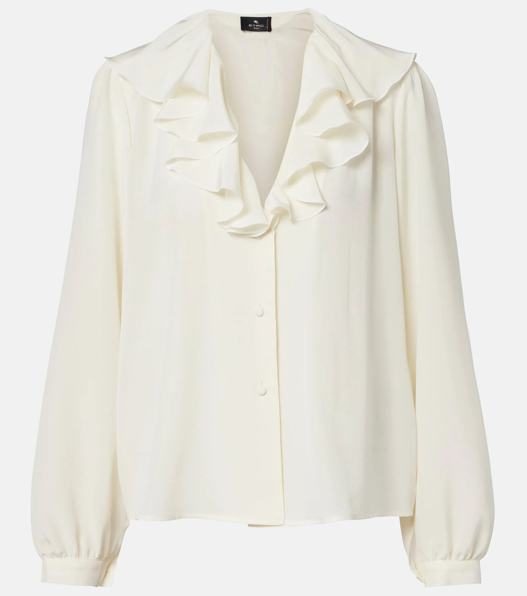 Etro's brand DNA manifests Italian glamour through revelry in color, fabric, and an approach to elegance that's entirely its own. This shirt is made in Italy from pure silk. Product Details - Material: 100% silk - Care instructions: dry clean - Made in Italy - Designer color name: W3789 - Item color: white - Closure: buttoned front - Item number: P01122131 Size & Fit - True to size - Semi-sheer - Designed for a loose fit - Non-stretchy fabric - Falls to the hip - The model seen in the picture is 178cm-5'10" and wearing a size IT 40