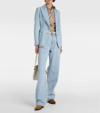 Product Details - Material: 100% cotton - Care instructions: machine wash at 30 degrees - Made in Italy - Designer color name: Blue - Embroidery: 100% polyester - Closure: zipper fly, button fastening - Pockets: five pockets - Belt loops - Item number: P00874309 Size & Fit - Fits large to size - we recommend trying one size smaller - Non-stretchy fabric - Wide-leg - Mid-rise - The model seen in the picture is 178cm-5'10" and wearing a size 25