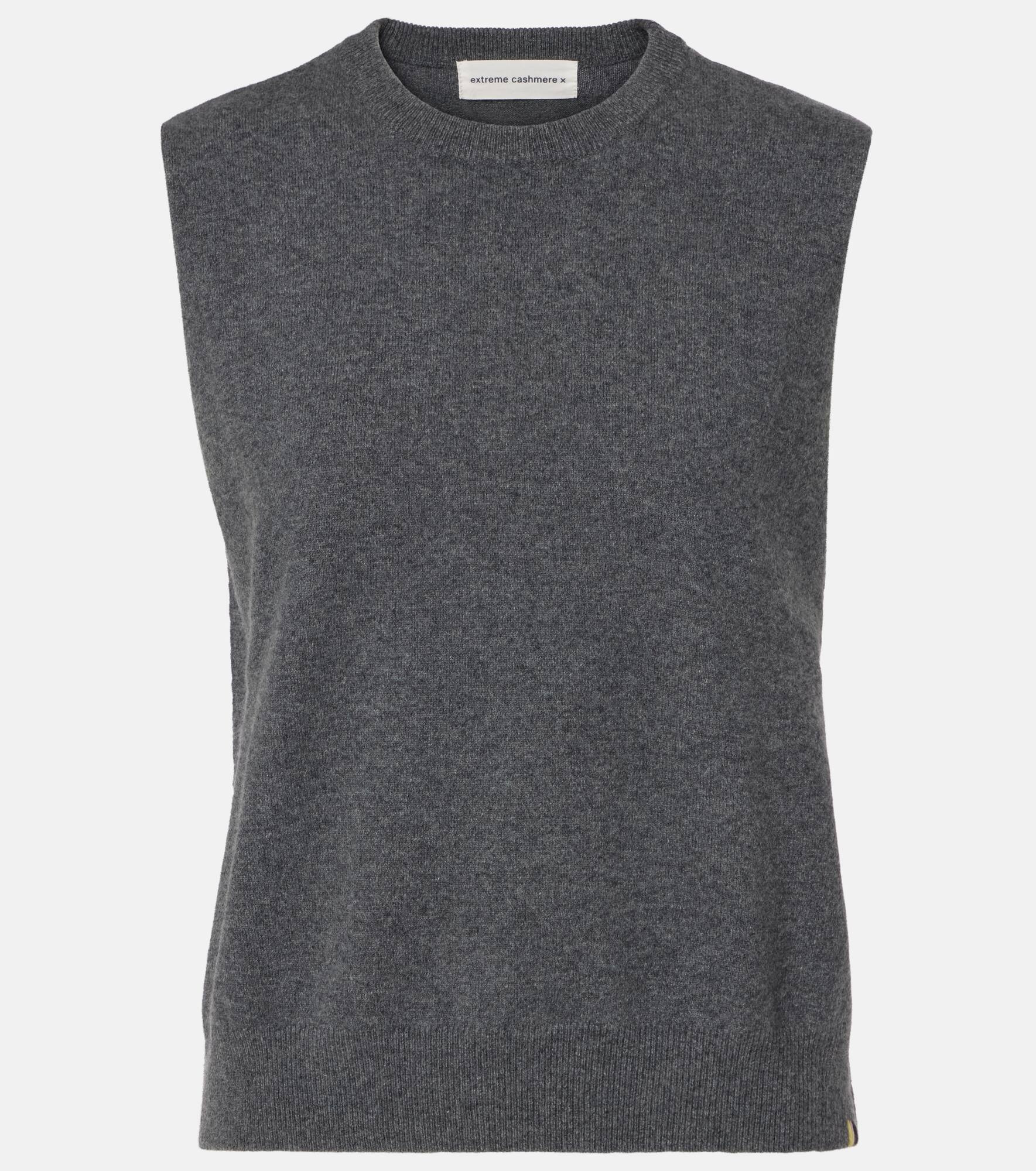 Designer Saskia Dijkstra founded Extreme Cashmere to meet a need for high-end wardrobe staples. The Be Now sweater vest is crafted from a soft cashmere blend and completes every look with its versatile design. Product Details - Material: 88% cashmere, 10% nylon, 2% elastane - Care instructions: machine wash at 30 degrees - Made in China - Designer color name: Felt - Item color: gray - Collar: crewneck - Hem: ribbed - Item number: P01085143 Size & Fit - True to size - One size: perfect fit for sizes XS-L - Straight fit - Stretchy fabric - Falls to the hip - One size