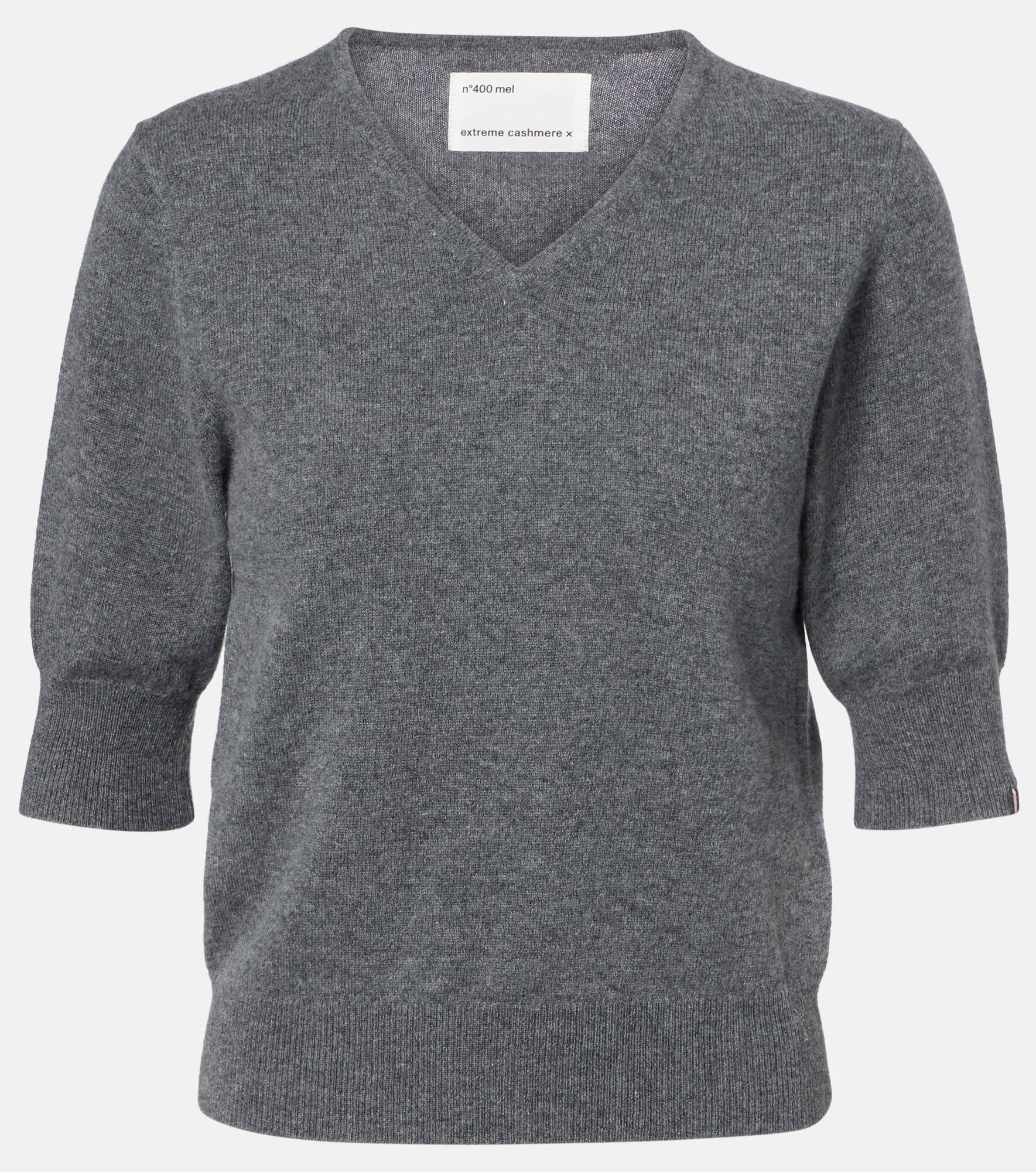 Extreme Cashmere sources its eponymous yarn from Mongolian goats known for their ultra-soft, resilient coats. The Mel top is crafted from cashmere and boasts a classic V-neckline. Product Details - Material: 100% cashmere - Care instructions: machine wash at 30 degrees - Made in China - Designer color name: Felt - Item color: gray - Collar: V-neck - Cuff: ribbed - Hem: ribbed - Item number: P01110851 Size & Fit - True to size - One size: perfect fit for sizes XS/M - Cinched waist - Stretchy fabric - Cropped