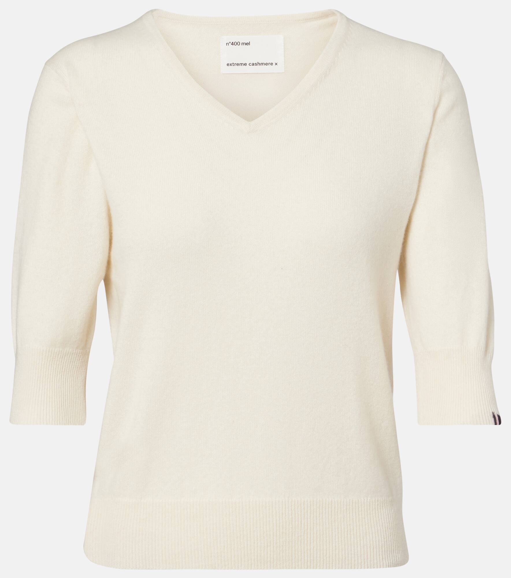 Extreme Cashmere sources its eponymous yarn from Mongolian goats known for their ultra-soft, resilient coats. The Mel top is crafted from cashmere and boasts a classic V-neckline. Product Details - Material: 100% cashmere - Care instructions: machine wash at 30 degrees - Made in China - Designer color name: Cream - Item color: white - Collar: V-neck - Cuff: ribbed - Hem: ribbed - Includes: dust bag - Item number: P01102688 Size & Fit - True to size - One size: perfect fit for sizes XS-M - Straight fit - Slightly stretchy fabric - Falls to the hip