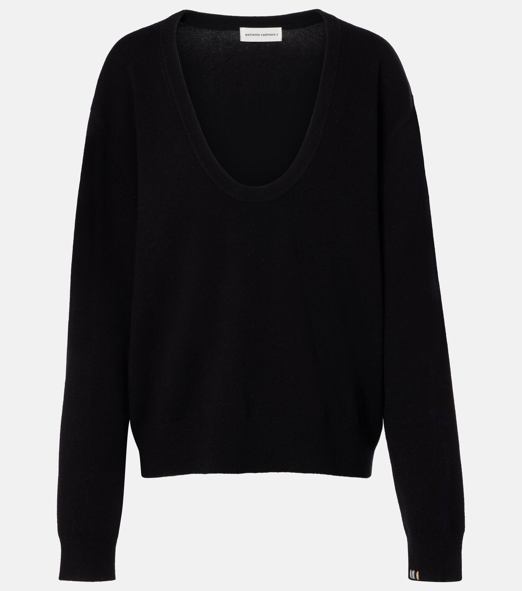 Garments from Extreme Cashmere are timeless, minimalist and beautifully made. The N°424 Jacob sweater is crafted from a soft cashmere blend and finished with classic ribbed cuffs and hem. Product Details - Material: 88% cashmere, 10% nylon, 2% elastane - Care instructions: machine wash at 30 degrees - Made in China - Designer color name: Raven - Item color: black - Cuff: ribbed - Hem: ribbed - Item number: P01084902 Size & Fit - True to size - One size: perfect fit for sizes XS-XL - Dropped shoulders - Designed for a loose fit - Stretchy fabric - Falls to the hip - One size