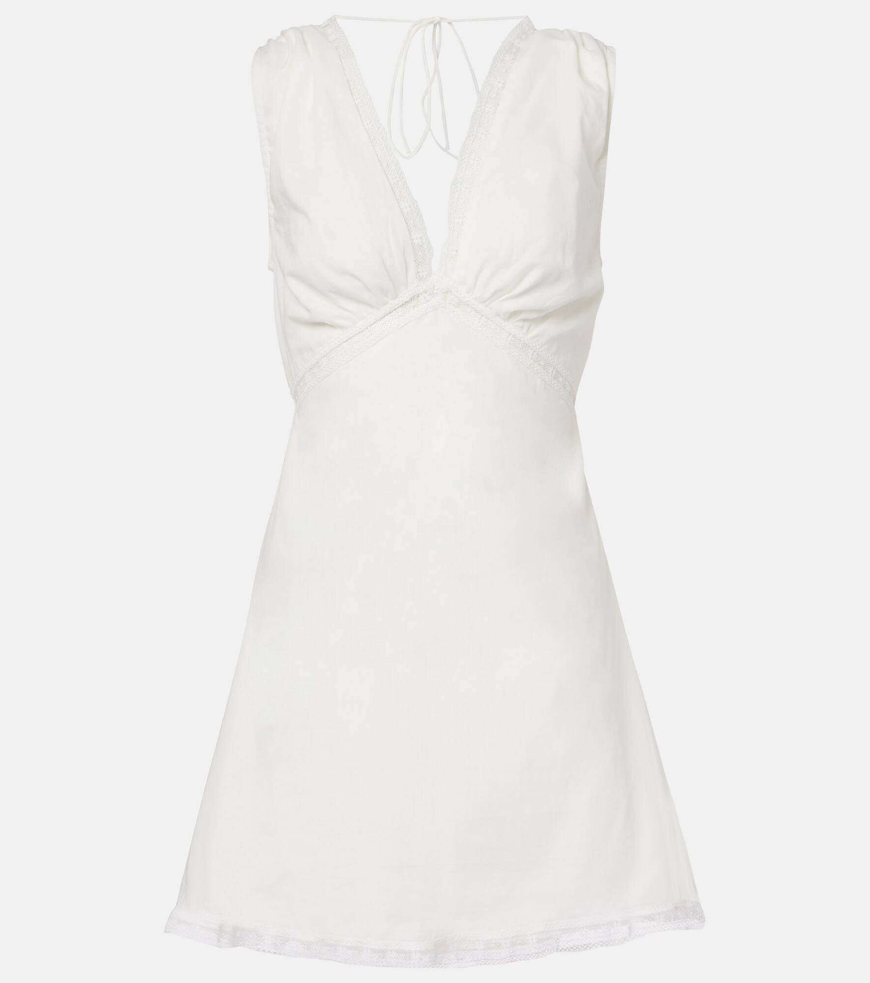 True to Faithfull's ethos, this design brings the brand's passion for travel and summertime into focus. Crafted from pure, lightweight cotton voile, the Denise minidress is finished with delicate vintage lace trims. Product Details - Material: 100% cotton - Care instructions: hand wash - Made in Indonesia - Designer color name: White - Item color: white - Lining: 100% cotton - Trim: 100% polyester - Closure: zipped side - Self-tie back - Item number: P01065209 Size & Fit - True to size - Low back - Semi-sheer - Cinched waist - Non-stretchy fabric - The model seen in the picture is 178cm-5'10" and wearing a size XS
