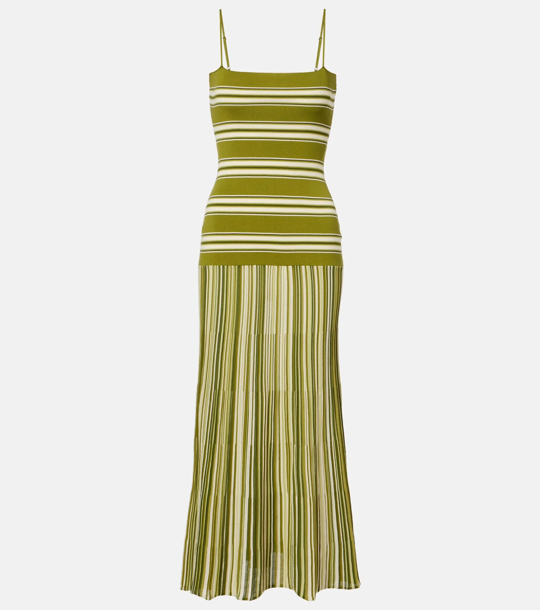 True to Faithfull's ethos, the Esenia maxi dress brings the brand's passion for travel and summertime into focus. Made from a soft cotton blend, the design showcases a striped motif. Product Details - Material: 63% cotton, 36% nylon, 1% elastane - Care instructions: hand wash cold - Made in China - Color: green - Designer color name: Ombre Stripe Macro Juniper - Item color: green, white - Adjustable shoulder straps - Item number: P01130342 Size & Fit - True to size - Fitted - Stretchy fabric - The model seen in the picture is 178cm-5'10" and wearing a size XS