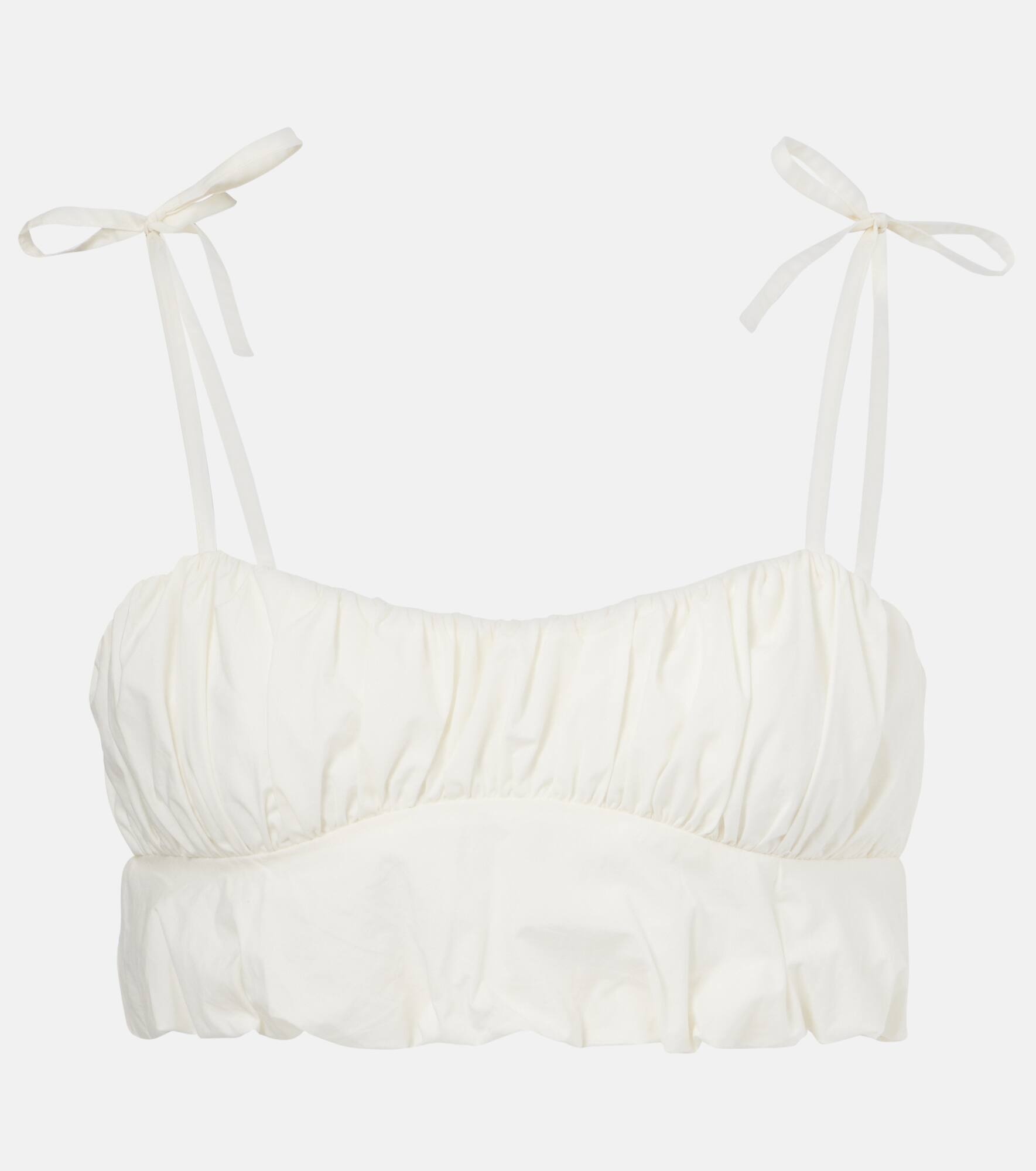 True to Faithfull's ethos, this design brings the brand's passion for travel and summertime into focus. This crop top is cut from cotton poplin, complete with self-tie shoulder straps and a gathered finish. Product Details - Material: 100% cotton - Care instructions: dry clean - Made in Indonesia - Designer color name: White - Item color: white - Lining: 100% cotton - Closure: self-ties - Item number: P01042233 Size & Fit - Fits small to size - we recommend trying one size larger - Fitted - Non-stretchy fabric - Cropped - The model seen in the picture is 178cm-5'10" and wearing a size S