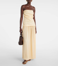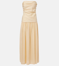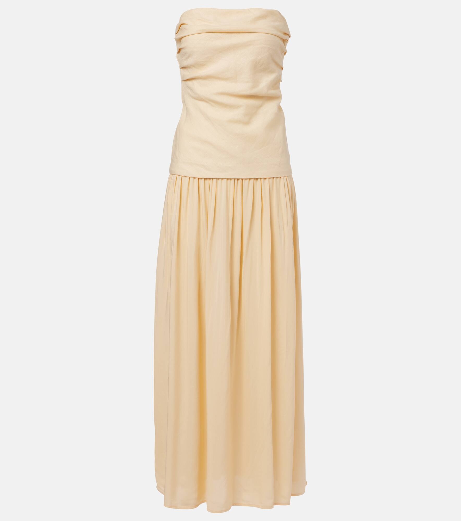 Hedy strapless gathered linen and voile maxi dress Pastel yellow