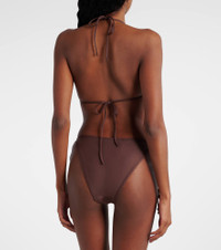 True to Faithfull's ethos, this design brings the brand's passion for travel and summertime into focus. The Uma bikini top showcases beaded adornments, complete with neck and back-tie straps for a secure fit. Product Details - Material: 78% polyamide, 22% elastane - Care instructions: hand wash - Made in Indonesia - Designer color name: Cacao - Item color: brown - Item number: P01042229 Size & Fit - True to size - Unpadded Top - The model seen in the picture is 178cm-5'10", cup size B, and wearing a size XS