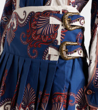 Blue Arabesque Scarf Buckled Pleated Organic Cotton Mini Skirt