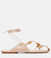 Complete warm-weather looks with playful footwear, such as these flat sandals from Farm Rio. The pair is thoughtfully crafted from supple leather and accented with bead embellishments on the straps. Product Details - Upper: leather - Lining: leather - Sole: leather insole and sole - Toe shape: square open toe - Made in Brazil - Includes: dust bag, shoe box - Designer color name: Blush Pink - Item color: pink - Item number: P01063243 Size & Fit - True to size - Half sizes please take the next size down - US sizes - 1,5cm-0.5" heel (size EU 38)