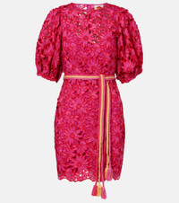 Farm Rio's signature vibrant hues celebrate the brand's Brazilian heritage and invite joyful self-expression. Crafted from lace, this minidress showcases an intricate floral pattern and is finished with a detachable self-tie belt. Product Details - Material: 100% polyester - Care instructions: hand wash - Made in China - Designer color name: Pink - Item color: purple - Lining: 100% viscose - Cuff: elasticated - Closure: concealed zipped back, hook-fastening back - Detachable belt - Item number: P01111982 Size & Fit - True to size - Oversized shoulders - Fitted - Adjustable at the waist - Non-stretchy fabric - The model seen in the picture is 178cm-5'10" and wearing a size XS
