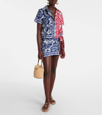 Farm Rio's signature vibrant prints celebrate the brand's Brazilian heritage and invite joyful self-expression. This cotton shirt features an all-over contrasting print and a boxy silhouette, which is enhanced by a box pleat at the back. Product Details - Material: 100% cotton - Care instructions: machine wash at 30 degrees - Made in India - Designer color name: Cashew and Birds Red and Blue - Item color: red, blue - Closure: concealed buttoned front - Collar: classic (Straight point) - Item number: P01120735 Size & Fit - True to size - Designed for a loose fit - Non-stretchy fabric - Slightly cropped - The model seen in the picture is 178cm-5'10" and wearing a size XS