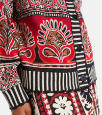 Knitted from pure cotton yarn, this Farm Rio cardigan features a relaxed fit, striped trims, and a colorful jacquard rendition of their Coconut Grove pattern. Product Details - Material: 100% cotton - Care instructions: hand wash - Made in China - Designer color name: Ainika Love Coconut Groove - Item color: black, red, beige - Collar: V-neck - Closure: buttoned front - Hem: scalloped - Item number: P01101958 Size & Fit - True to size - Designed for a loose fit - Slightly stretchy fabric - Falls to the hip - The model seen in the picture is 178cm-5'10" and wearing a size XS