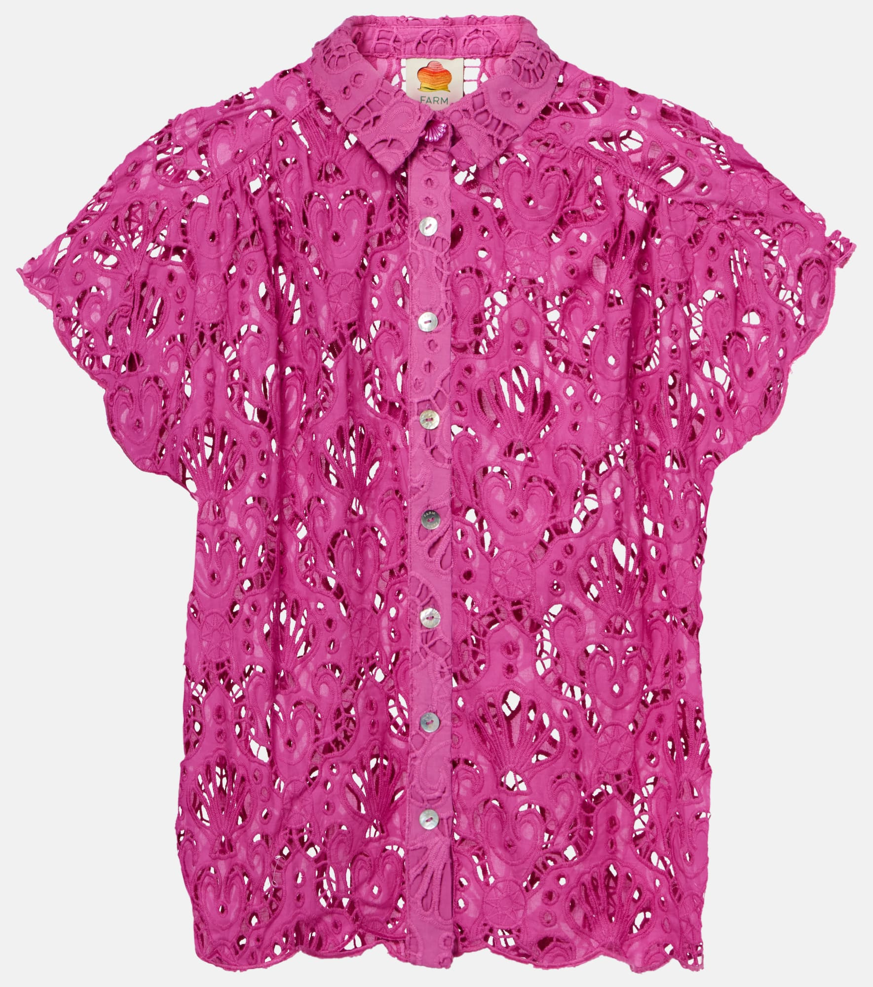 Farm Rio's signature vibrant prints celebrate the brand's Brazilian heritage and invite joyful self-expression: case in point, this short-sleeved shirt. Made from cotton lace, it's adorned with an eyelet and seashell motif. Product Details - Material: 100% cotton - Care instructions: hand wash - Made in China - Designer color name: Pink - Item color: pink - Closure: buttoned front - Item number: P01056518 Size & Fit - True to size - Designed for a loose fit - Non-stretchy fabric - Falls to the hip - The model seen in the picture is 178cm-5'10" and wearing a size XS
