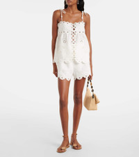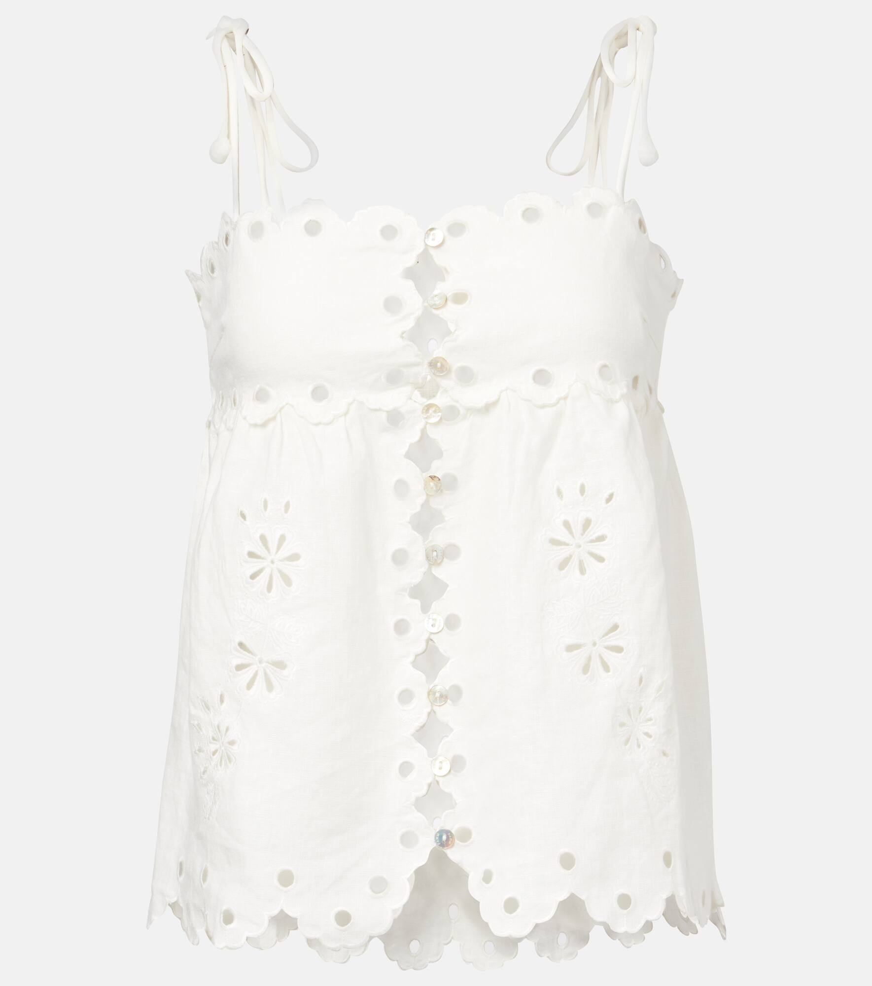 Embroidered cutout linen top