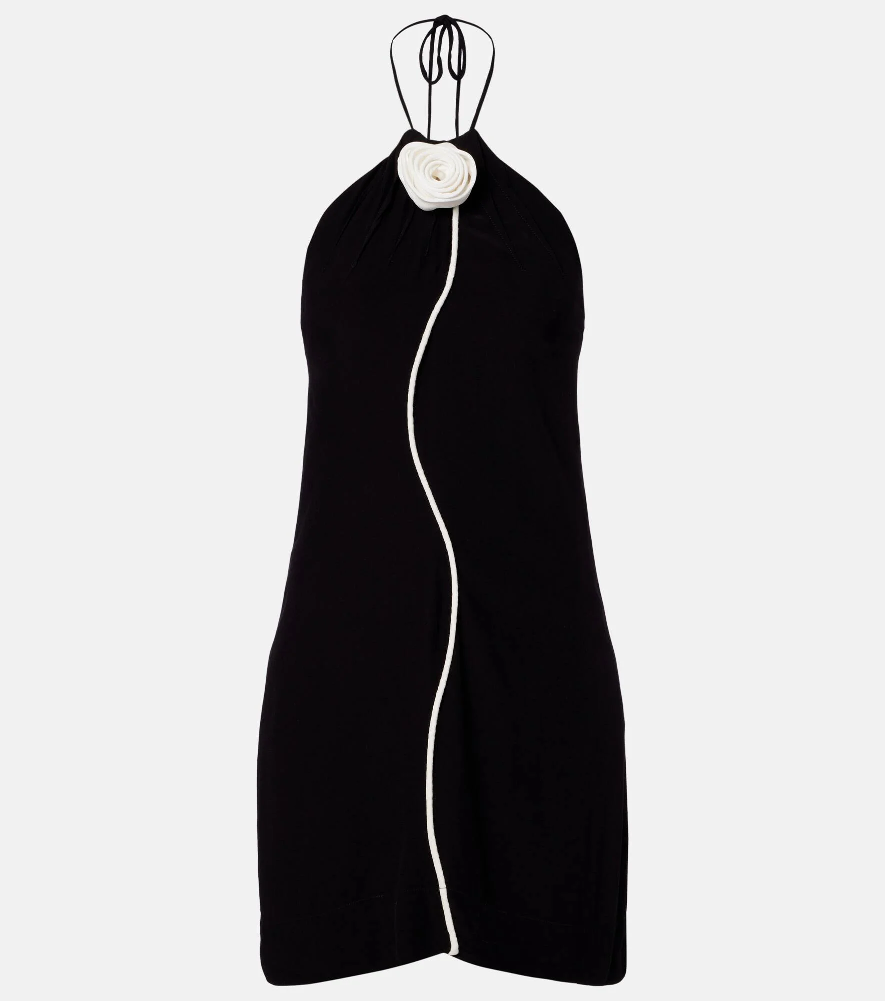 This Farm Rio minidress is a sophisticated design that blends comfort with unique detailing. The style features a sheath silhouette, a contrasting white stripe along the front, and a halterneck adorned with a floral applique. Product Details - Material: 55% rayon, 45% viscose - Care instructions: hand wash - Made in China - Color: black - Designer color name: Black - Item color: black - Lining: 100% viscose - Self-tie neck - Closure: invisible zipper - Item number: P01120856 Size & Fit - True to size - Low back - Elasticated top - Fitted - Non-stretchy fabric - The model seen in the picture is 178cm-5'10" and wearing a size XS