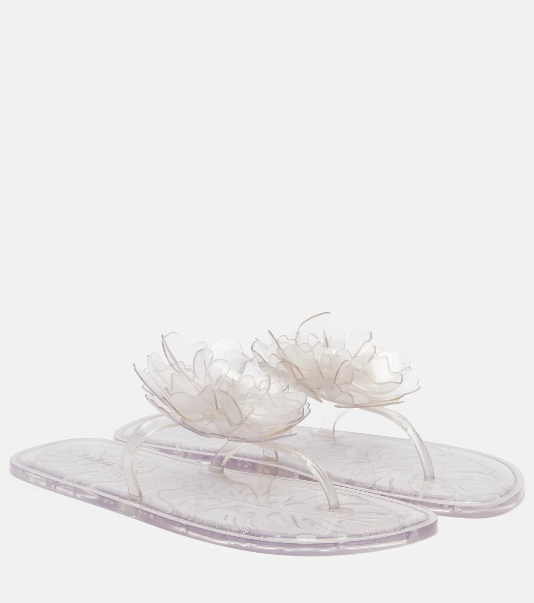 These thong sandals from Farm Rio are destined for sunlit moments, from summertime strolls to relaxed getaways. They're made from transparent rubber and decorated with three-dimensional floral appliques. Product Details - Upper: rubber - Lining: rubber - Sole: rubber insole and sole - Toe shape: square toe - Made in Brazil - Includes: shoe box - Designer color name: Ivory - Item color: transparent - Item number: P01063270 Size & Fit - True to size - Half sizes please take the next size down - US sizes