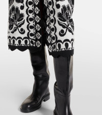 Knitted from soft yarns, this Farm Rio midi skirt features a form-fitting silhouette, a scalloped hemline, and a jacquard rendition of their Floral Arabesque pattern. Product Details - Material: 30% polyester, 24% viscose, 24% polyamide, 22% acrylic - Care instructions: hand wash - Made in China - Designer color name: Floral Arabesque Cream - Item color: white, black - Closure: partially buttoned front - Elasticated waistband - Pockets: patch pockets - Long vent - Hem: scalloped - Item number: P01101967 Size & Fit - True to size - Elasticated waist - Stretchy fabric - The model seen in the picture is 178cm-5'10" and wearing a size XS