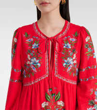 Floral linen-blend midi dress