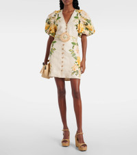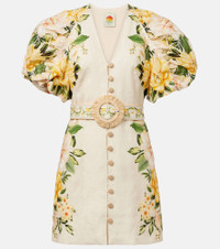 Farm Rio's signature vibrant prints celebrate the brand's Brazilian heritage and invite joyful self-expression. Thoughtfully crafted from pure, breathable linen, this minidress features delicate puff sleeves, a striking tonal belt, and eye-catching florals. Product Details - Material: 100% linen - Care instructions: hand wash - Made in China - Designer color name: Garden Cascade Sand - Item color: beige, multicolor - Lining: 100% viscose - Detachable belt - Closure: buttoned front - Item number: P01070728 Size & Fit - True to size - Oversized shoulders - Cinched waist - Non-stretchy fabric - The model seen in the picture is 178cm-5'10" and wearing a size XS