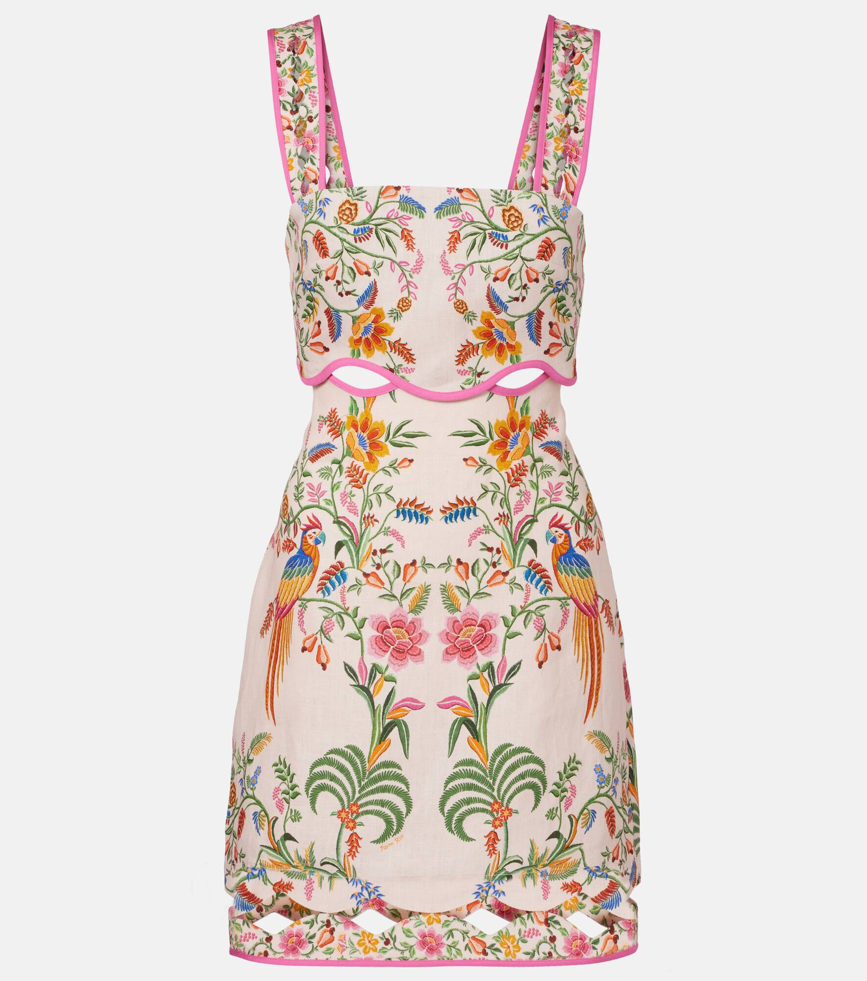 This Farm Rio minidress is crafted from breathable linen. This cut-out piece features a square neckline and a vibrant nature-inspired print that adds charm to this breezy, sun-ready silhouette. Product Details - Material: 100% linen - Care instructions: machine wash at 30 degrees - Made in China - Designer color name: Delicate Forest Pink - Item color: pink, multicolor - Two-piece set - Closure: buttoned back, zipped back - Item number: P01070763 Size & Fit - True to size - Low back - Cinched waist - Non-stretchy fabric - The model seen in the picture is 178cm-5'10" and wearing a size XS