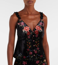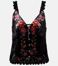 Farm Rio's signature vibrant prints celebrate the brand's Brazilian heritage and invite joyful self-expression. This velvet top features adjustable shoulder straps, buttoned front closure, and a signature all-over floral print. Product Details - Material: 80% viscose, 20% nylon - Care instructions: dry clean - Made in China - Designer color name: Belle Garden Black - Item color: black, multicolor - Lining: 100% viscose - Adjustable shoulder straps - Closure: buttoned front - Item number: P01101959 Size & Fit - True to size - Low back - Straight fit - Non-stretchy fabric - Slightly cropped - The model seen in the picture is 178cm-5'10" and wearing a size XS