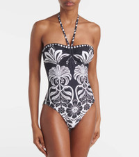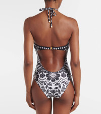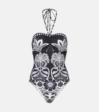 Flowers Leopards halterneck swimsuit