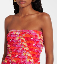 Farm Rio’s signature vibrant prints celebrate the brand's Brazilian heritage and invite joyful self-expression. Made from lightweight fabric, the strapless ruched Flying Birds maxi dress has an invisible zipper at the side seam. Product Details - Material: 100% viscose - Care instructions: machine wash at 30 degrees - Made in India - Designer color name: Flying Birds Orange - Item color: multicolor - Lining: 100% viscose - Partially lined - Detachable, adjustable shoulder straps - Closure: zipped side - Item number: P01070694 Size & Fit - True to size - Strapless - Fitted bodice, loose skirt - Partly stretchy fabric - Height of model is 174cm-68.5" and wears a size XS